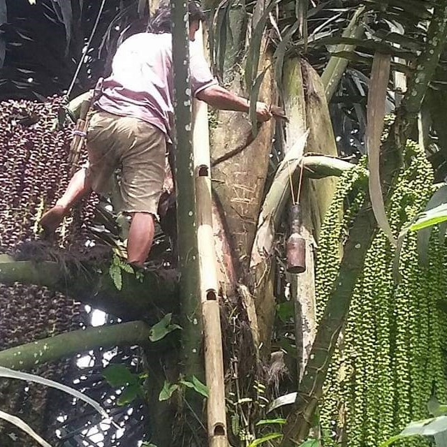 Arenga sugar is well known as Javanese sugar. It is processed by getting palm tree sap which is taken from the male flower bunches. Usually, if the flower doesn’t transform into palm sugar, the fruit is made kolang kaling. To get arenga sugar, there are several stages and this takes quite a long time when starting from the beginning of taking the sap.